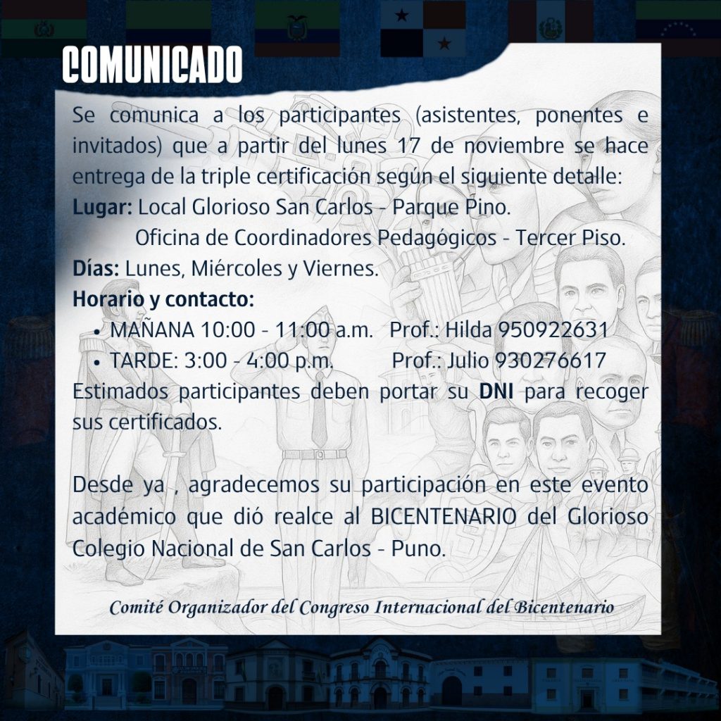 Organiza: Glorioso Colegio Nacional de San Carlos